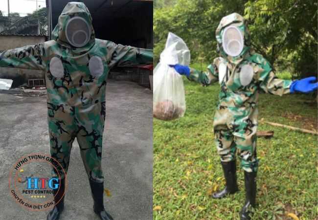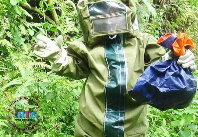 • Thực hiện dịch vụ: Kỹ thuật viên mặc đồ bảo hộ, sử dụng các trang thiết bị và hóa chất chuyên dụng để bắt ong an toàn và hiệu quả.