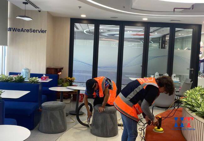 Vệ sinh nội thất: Đưa ra giải pháp vệ sinh các đồ dùng nội thất như bàn làm việc, tủ kệ, thảm trải sàn nhằm duy trì môi trường làm việc sạch sẽ, chuyên nghiệp.