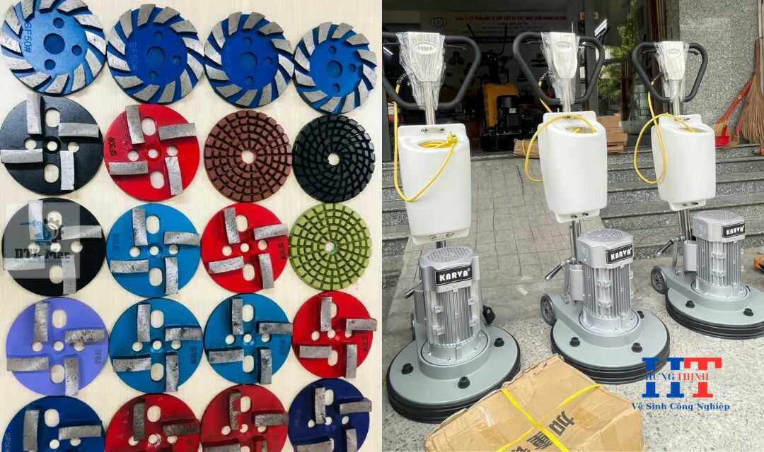 Máy hút bụi công nghiệp: Sử dụng để hút bụi bẩn phát sinh trong quá trình mài, đánh bóng sàn, đảm bảo môi trường làm việc sạch sẽ và an toàn.