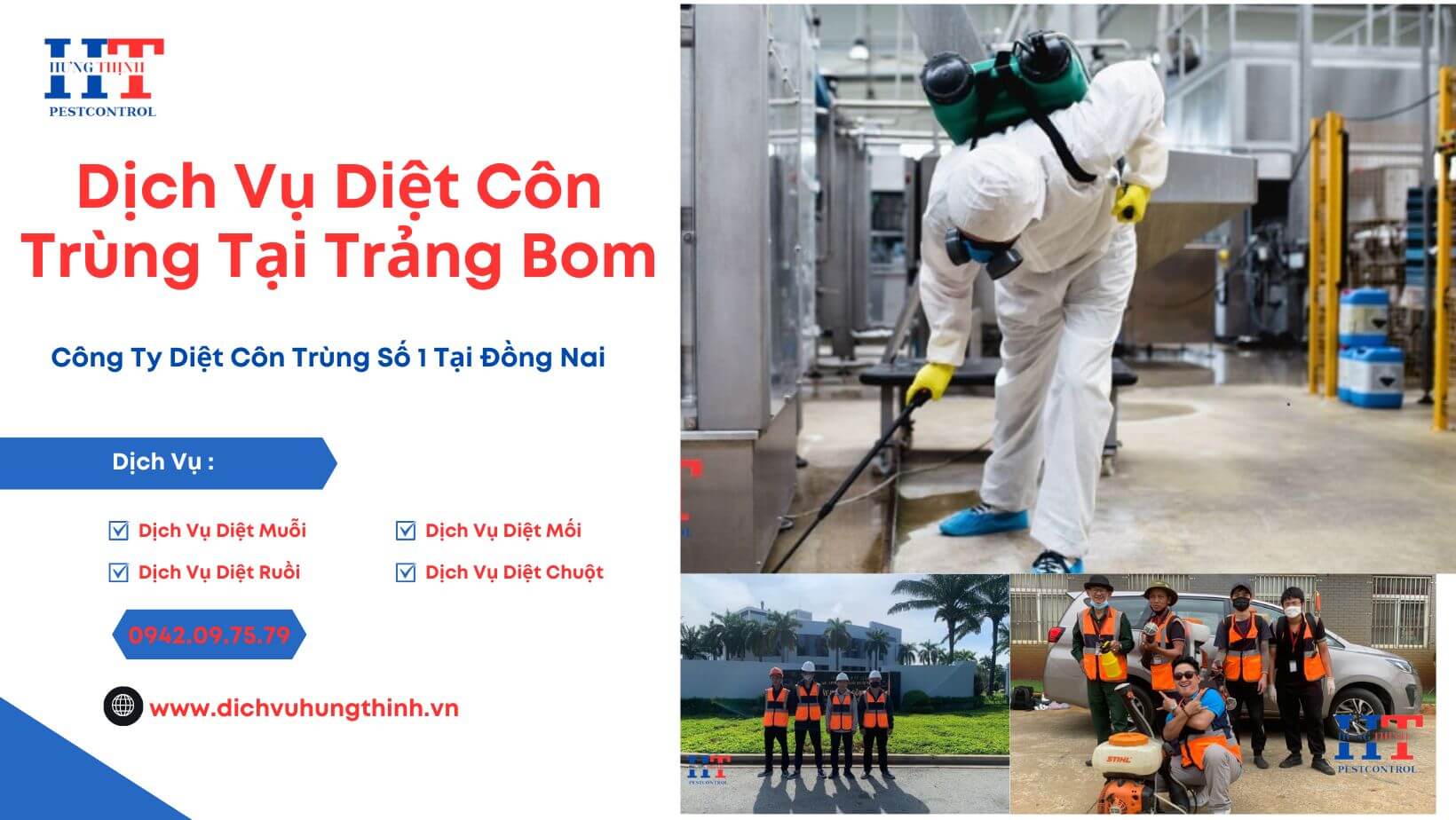 Dịch vụ diệt côn trùng tại Trảng Bom Đồng Nai của Hưng Thịnh Pest Control mang lại giải pháp toàn diện, an toàn và hiệu quả, giúp khách hàng kiểm soát tốt các vấn đề về côn trùng gây hại. Từ kiểm soát nhà xưởng cho đến không gian gia đình, chúng tôi cam kết mang đến dịch vụ chất lượng cao, đáng tin cậy, góp phần bảo vệ sức khỏe cộng đồng và môi trường sinh thái.